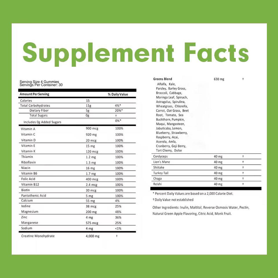 ผลิตภัณฑ์เสริมอาหารสารสกัดจากผักใบเขียวผสมสูตรเฉพาะ ช่วยเสริมสร้างความแข็งแรงและฟื้นตัวเร็วขึ้น ครีเอทีนกัมมี่