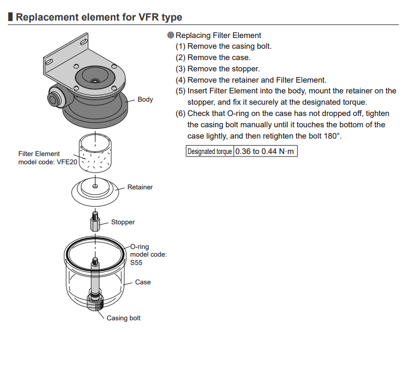 VFE20 Replacement element for VFR20 and VFB20ประเภท