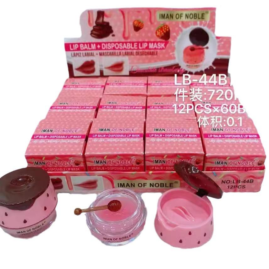 ฉลากส่วนตัวน้ําผึ้งสตรอเบอร์รี่ลิปบาล์มธรรมชาติซ่อมแซมแห้งชุ่มชื้นเกาหลีกลางคืนนอนพอกปากสีชมพูสําหรับหญิง