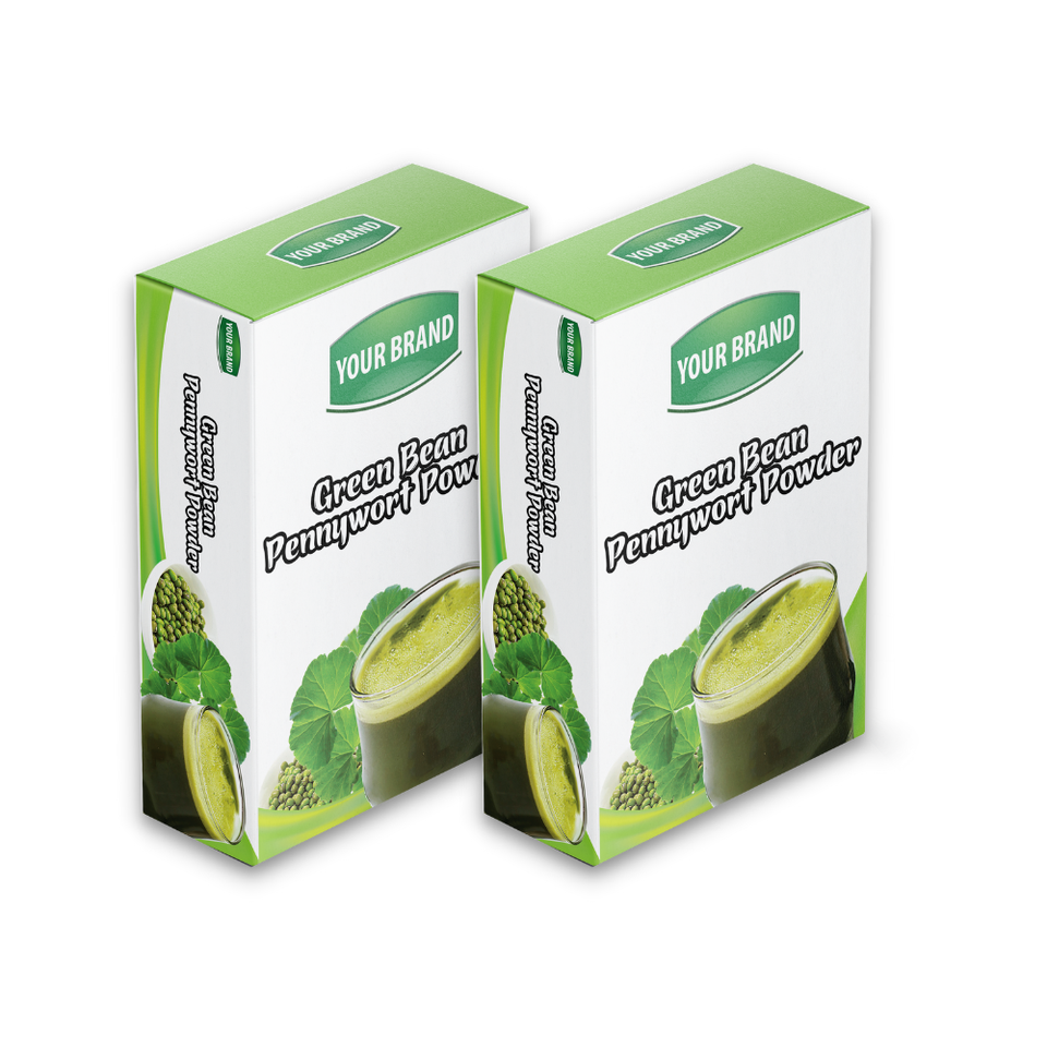 ผงชาดําสําเร็จรูปฉลากส่วนตัวผสมผงน้ําผลไม้สําเร็จรูปซองบรรจุภัณฑ์กล่องดีบุกชา Pennywort และถั่วมัง