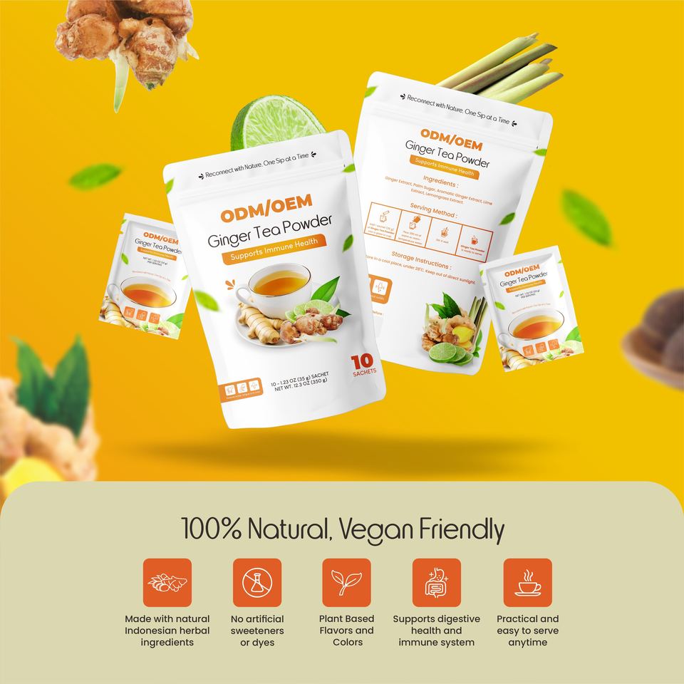 เครื่องดื่มสมุนไพรขิงสำเร็จรูปตราสินค้าส่วนตัว ปราศจากคาเฟอีน ช่วยดีต่อการย่อยอาหาร