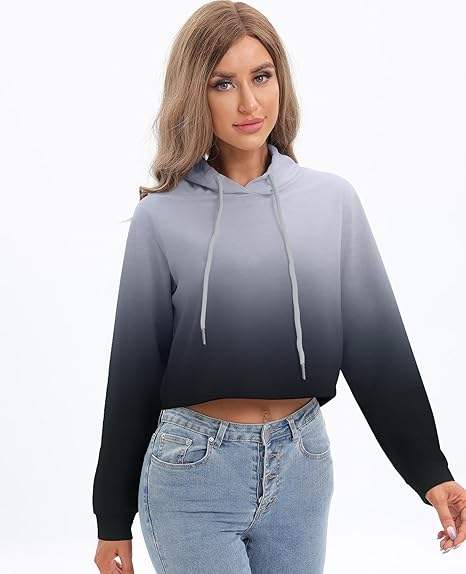 เสื้อฮู้ดครอปผู้หญิงแบรนด์ส่วนตัว สไตล์ทันสมัย แขนยาว เสื้อฮู้ดครอปผู้หญิงแบบสั่งทำพิเศษ ตัดเย็บแบบเลเยอร์