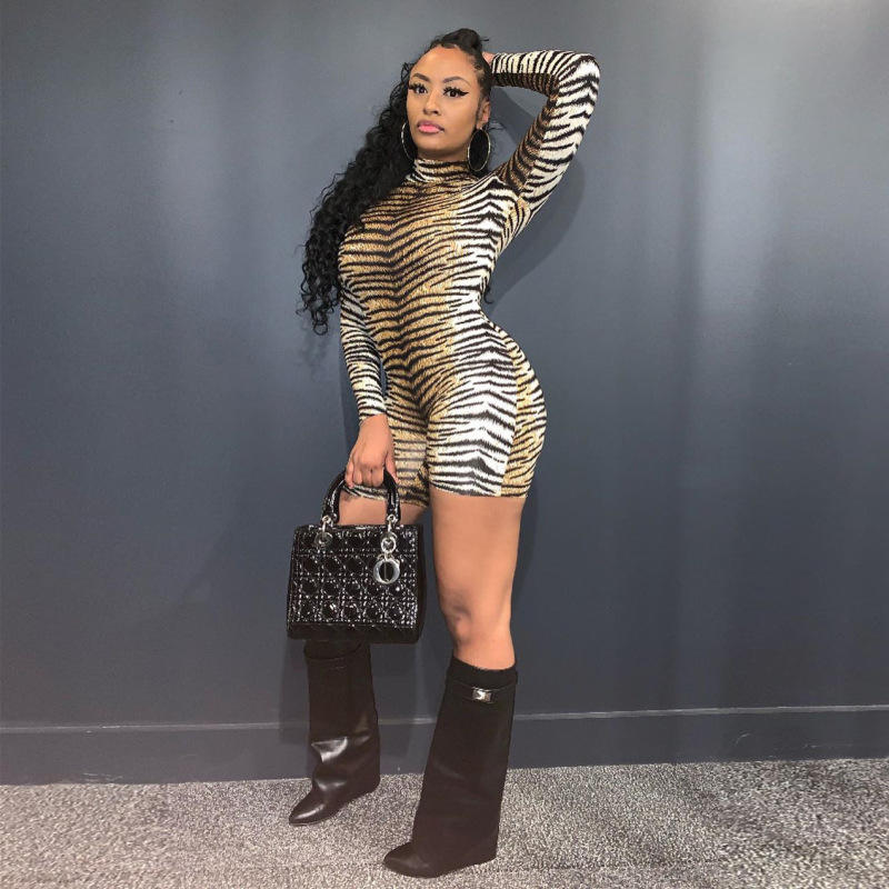 จั๊มสูทพิมพ์ลายเสือดาวสำหรับผู้หญิงจั๊มสูทชิ้นเดียวกางเกงขาสั้นพิมพ์ลายเสือฉลากส่วนตัว