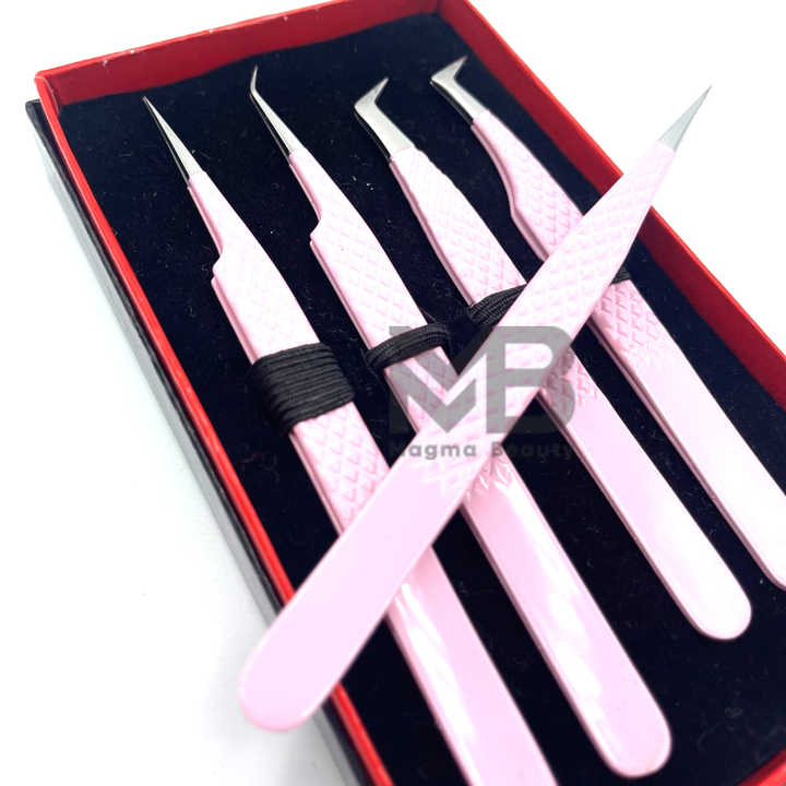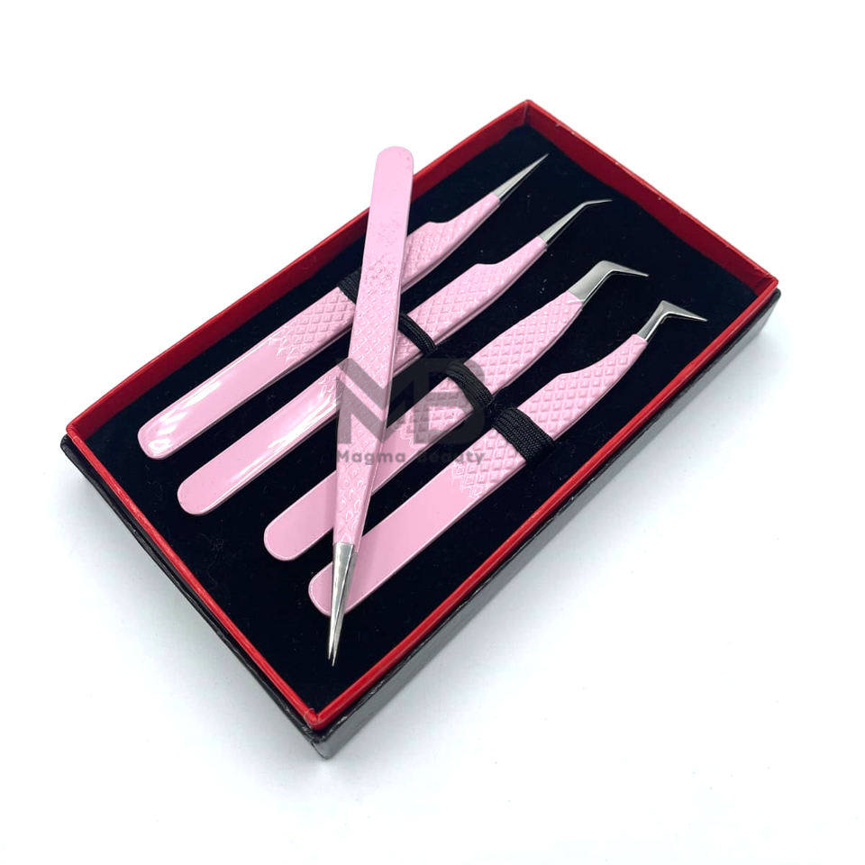 ชุดแหนบสแตนเลสสตีลญี่ปุ่นสำหรับผู้ผลิตขนตาหัวจับเพชรเคลือบสีชมพูอ่อนฉลากตามต้องการ