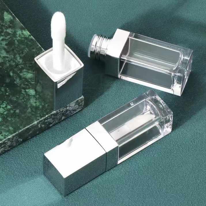 หลอดอะคริลิคเปล่าทรงสี่เหลี่ยมสำหรับใส่เครื่องสำอางลิปกลอสบรรจุภัณฑ์แบบหรูหราฉลากตามต้องการ