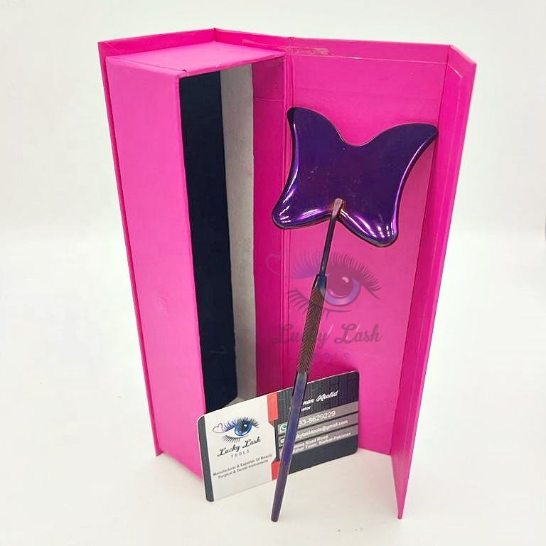 กระจกติดขนตาสแตนเลสแบบแข็งรูปทรงผีเสื้ออุปกรณ์เสริมความงามสั่งติดฉลากได้เอง