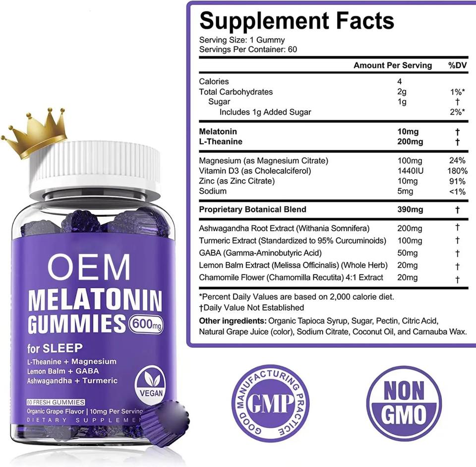 เยลลี่เมลาโทนิน500มก. สำหรับผู้ใหญ่การนอนหลับรองรับการเคี้ยวหมากฝรั่งสำหรับผู้หญิงและผู้ชาย