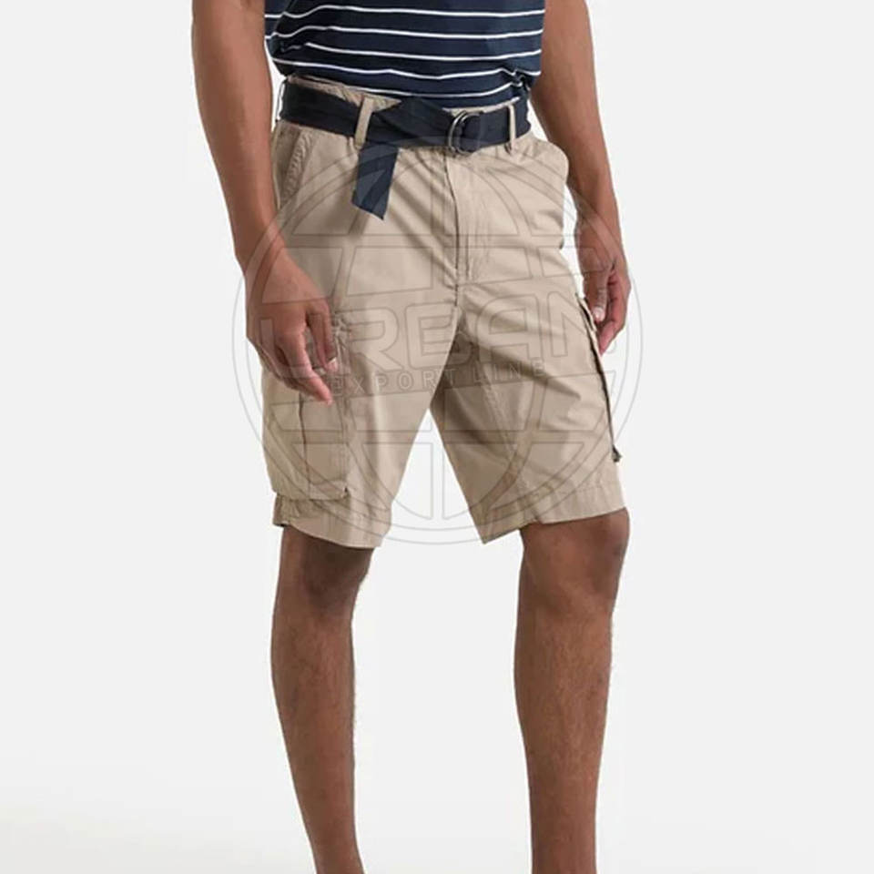 Private Label Men's Sporty Cargo Shorts 100% Cotton with Elastic Waist and Multi-Pockets Plain Color for Sale