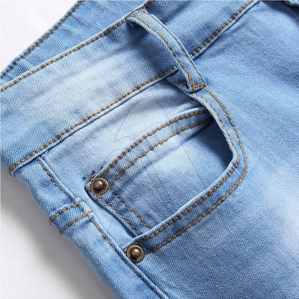 กางเกงยีนส์ผู้ชายแบรนด์ส่วนตัว น้ำหนักเบา ผ้าฝ้าย 100% ระบายอากาศได้ดี มีกระเป๋าหลายช่อง