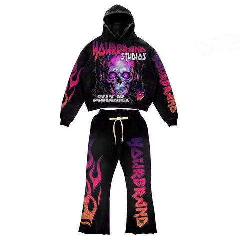 ชุดเซ็ตเสื้อฮู้ดและกางเกงแทร็คสูทสำหรับเด็กผู้ชาย แบรนด์ส่วนตัว ผลิตตามสั่ง ป้ายกำกับส่วนตัว ผ้าฝ้าย 100% ล้างสีแบบแอซิดวอช สไตล์สตรีทแวร์ สีพื้น รับผลิตแบบ OEM พร้อมสกรีนโลโก้