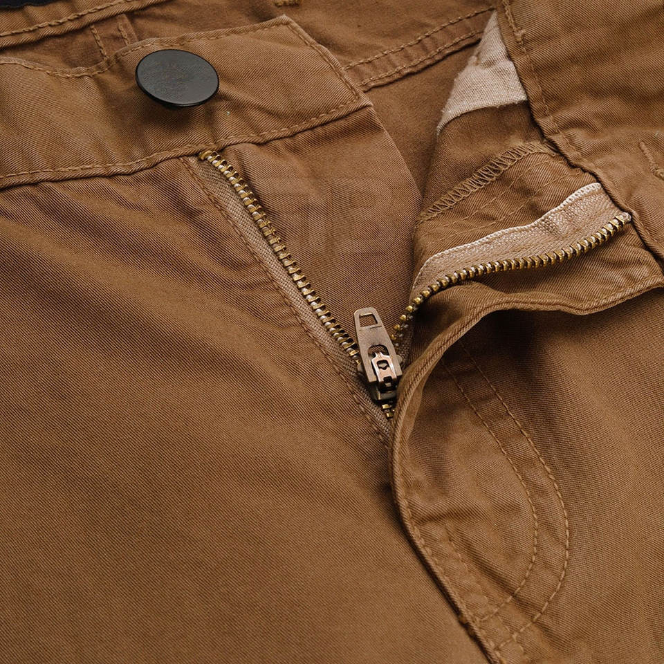 กางเกงคาร์โก้ลำลองของผู้ชายน้ำหนักเบาสีพื้นมีหลายกระเป๋าติดป้ายได้ตามต้องการ