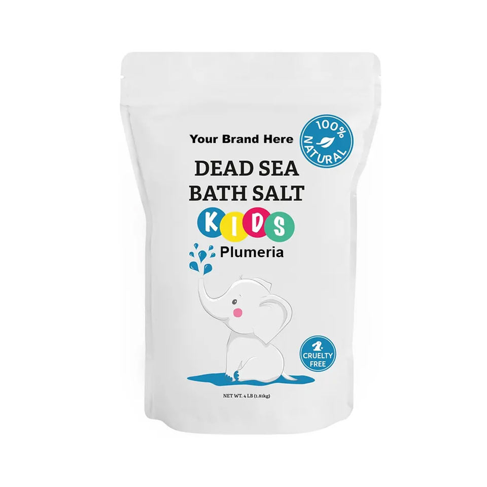 ป้ายส่วนตัวเกลือทะเลตายเด็ก Plumeria อาบน้ำแช่4ปอนด์เม็ดละเอียดขนาดใหญ่แพ็คปิดผนึกได้สำหรับใช้ในร่างกาย