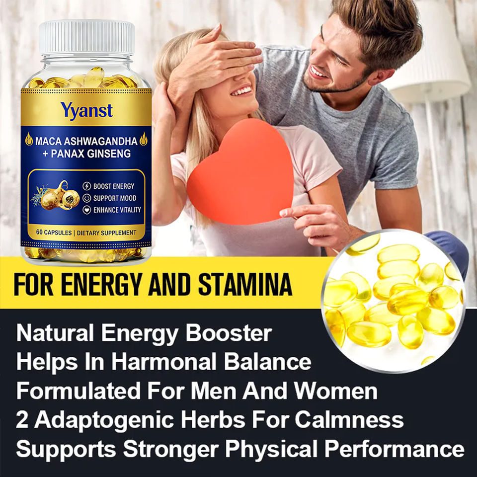 แคปซูลซอฟเจลเพิ่มพลังงานจากธรรมชาติสูตรเฉพาะ ผสมมาคาและอัชวากันธา สำหรับผู้ชาย - คาร์โบไฮเดรตต่ำและน้ำตาลต่ำ เสริมสร้างภูมิคุ้มกัน