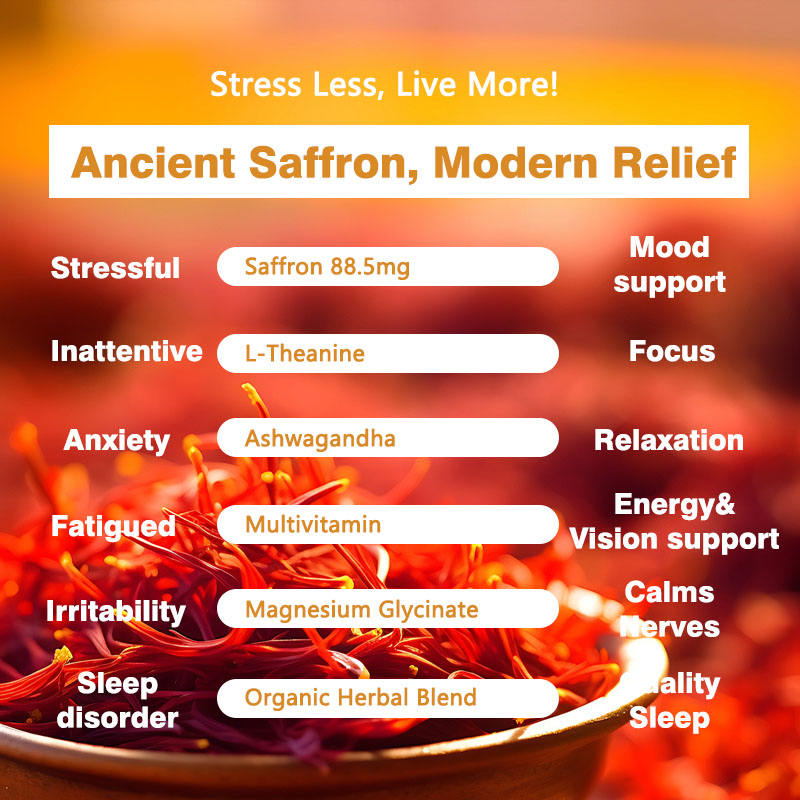 สารสกัดจากหญ้าฝรั่น, สารสกัดจากราก Ashwagandha, แอล-ธีอะนีน, แมกนีเซียม, วิตามิน D3, วิตามิน B12, ขมิ้น, สารสกัดจากเลมอนบาล์ม, สารสกัด Rhodiola Rosea, สารสกัดจากแปะก๊วย, สารสกัดจากแผงคอสิงโต, สารสกัดพริกไทยดำส่วนผสมหลัก