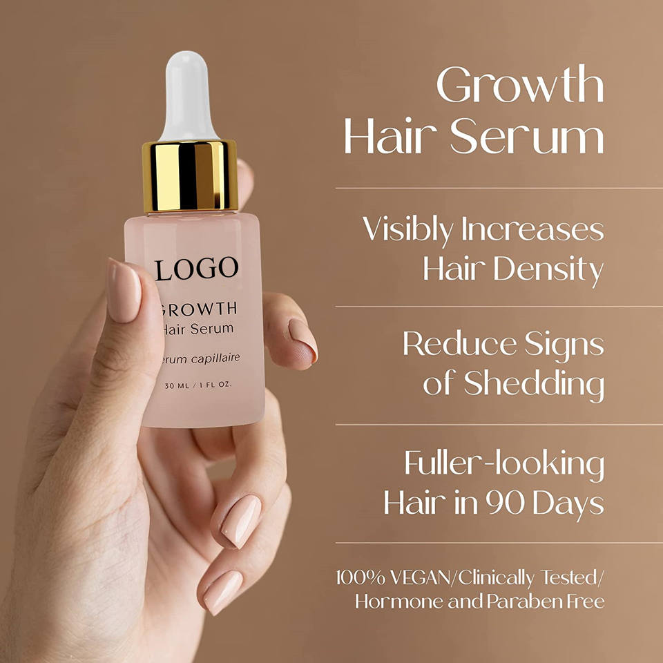 เซรั่มต่อต้านการสูญเสียเส้นผมเติบโตขึ้นจากมังสวิรัติธรรมชาติฉลากส่วนตัว