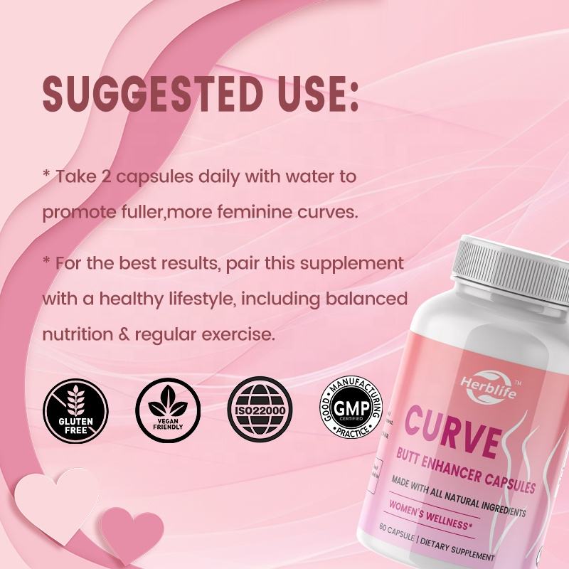 แคปซูลเสริมสะโพกโค้งเว้าแบบ OEM แบรนด์ส่วนตัว อาหารเสริมเพิ่มขนาดสะโพก ช่วยเสริมสะโพกและหน้าอกให้ใหญ่ขึ้น