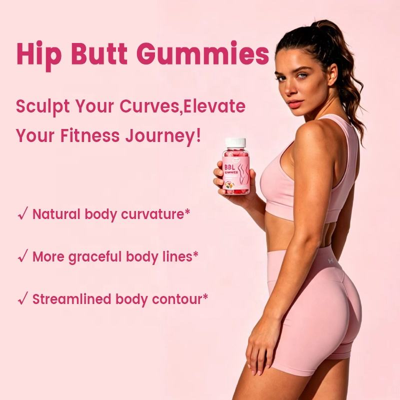 กัมมี่เสริมสะโพกและบั้นท้ายสำหรับผู้หญิง ยี่ห้อ OEM ผลิตภัณฑ์เพื่อเพิ่มความโค้งมนตามธรรมชาติ กัมมี่ BBL สำหรับขยายสะโพกและบั้นท้าย