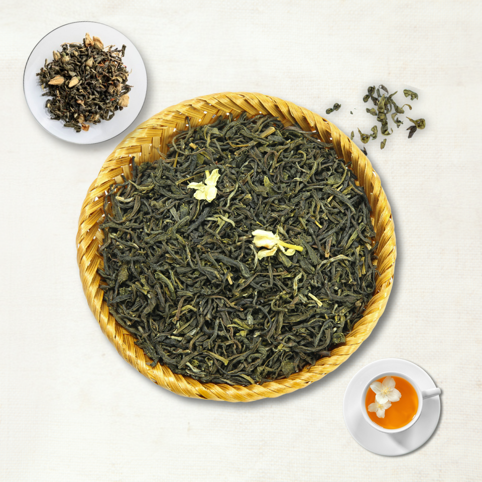 ชาเขียวหอมด้วยดอกไม้ชื่อพิเศษ