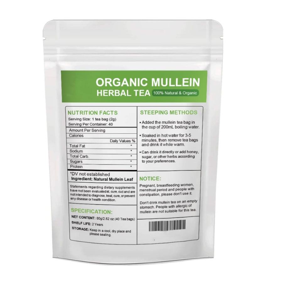ถุงชา mullein สมุนไพรธรรมชาติสำหรับทำความสะอาดปอดผลิตจากใบมัลลีนออแกนิค