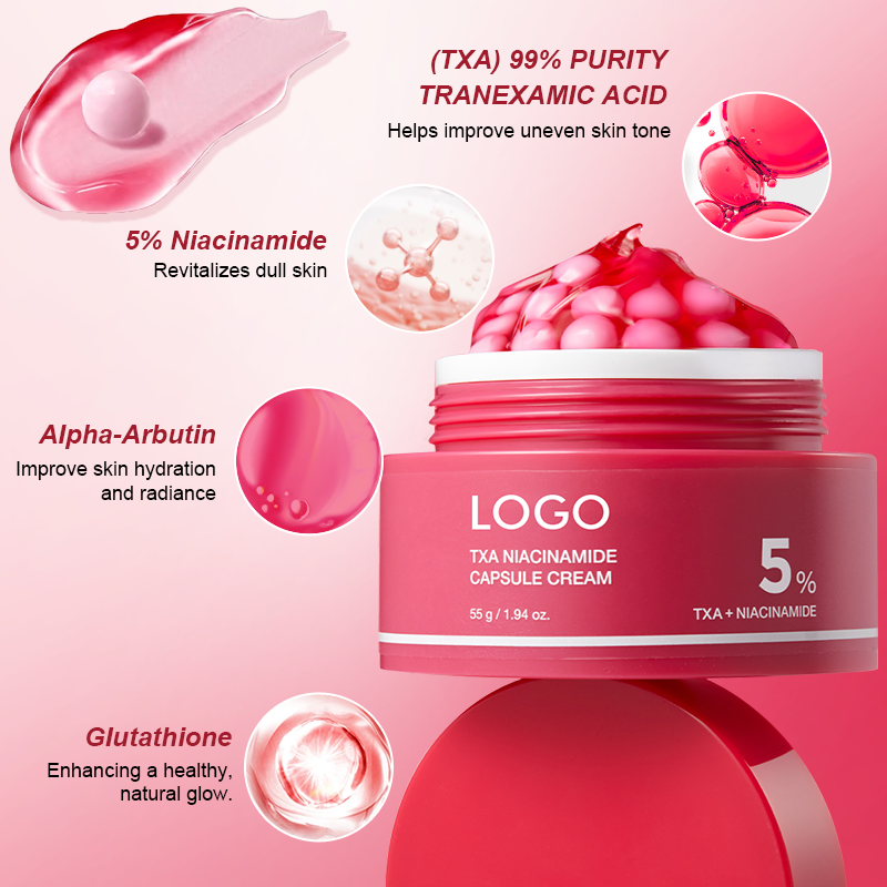 Private Label OEM ODM Natural Niacinamide Improves Uneven Skin Tone 46% Radiance TXA 5% Dual Effect Brightening Capsule Cream