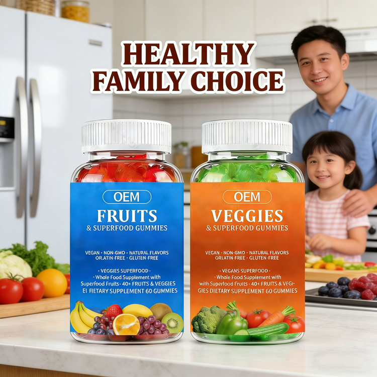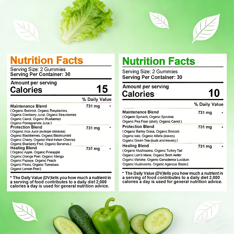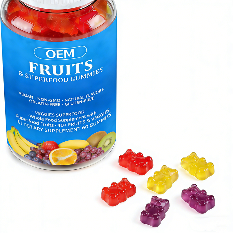 ผลิตภัณฑ์เสริมอาหารแบบ OEM แบรนด์ส่วนตัว ผลไม้และผักออร์แกนิก โปรไบโอติก กัมมี่ ปราศจากน้ำตาล สารต้านอนุมูลอิสระ บำรุงผิวพรรณ 40+ สารอาหาร ซุปเปอร์ฟู้ด สีเขียว