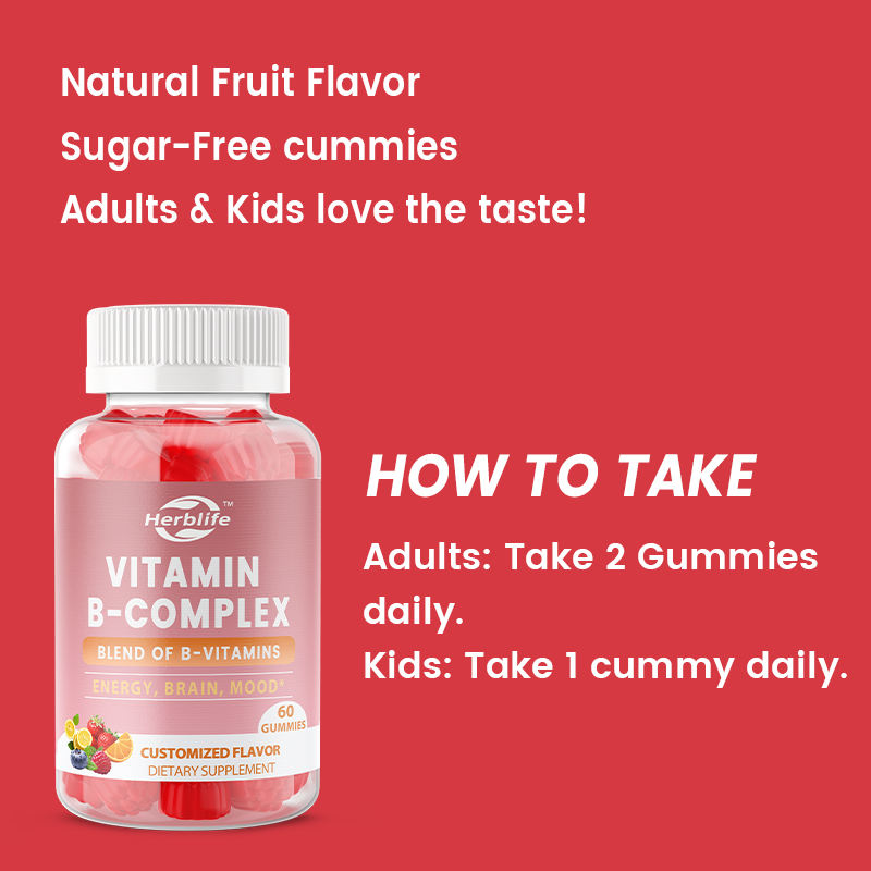 วิตามินบีรวมแบบกัมมี่วีแกนสำหรับผลิตภัณฑ์ฉลากส่วนตัว (OEM) วิตามินบี1 บี2 บี3 บี5 บี6 บี7 บี9 บี12 เพื่อพลังงานและระบบภูมิคุ้มกัน