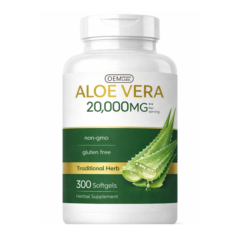 แคปซูลสารสกัดว่านหางจระเข้ธรรมชาติ แบรนด์ส่วนตัว OEM สำหรับผู้ใหญ่ บำรุงสุขภาพกระเพาะอาหาร 60 แคปซูล