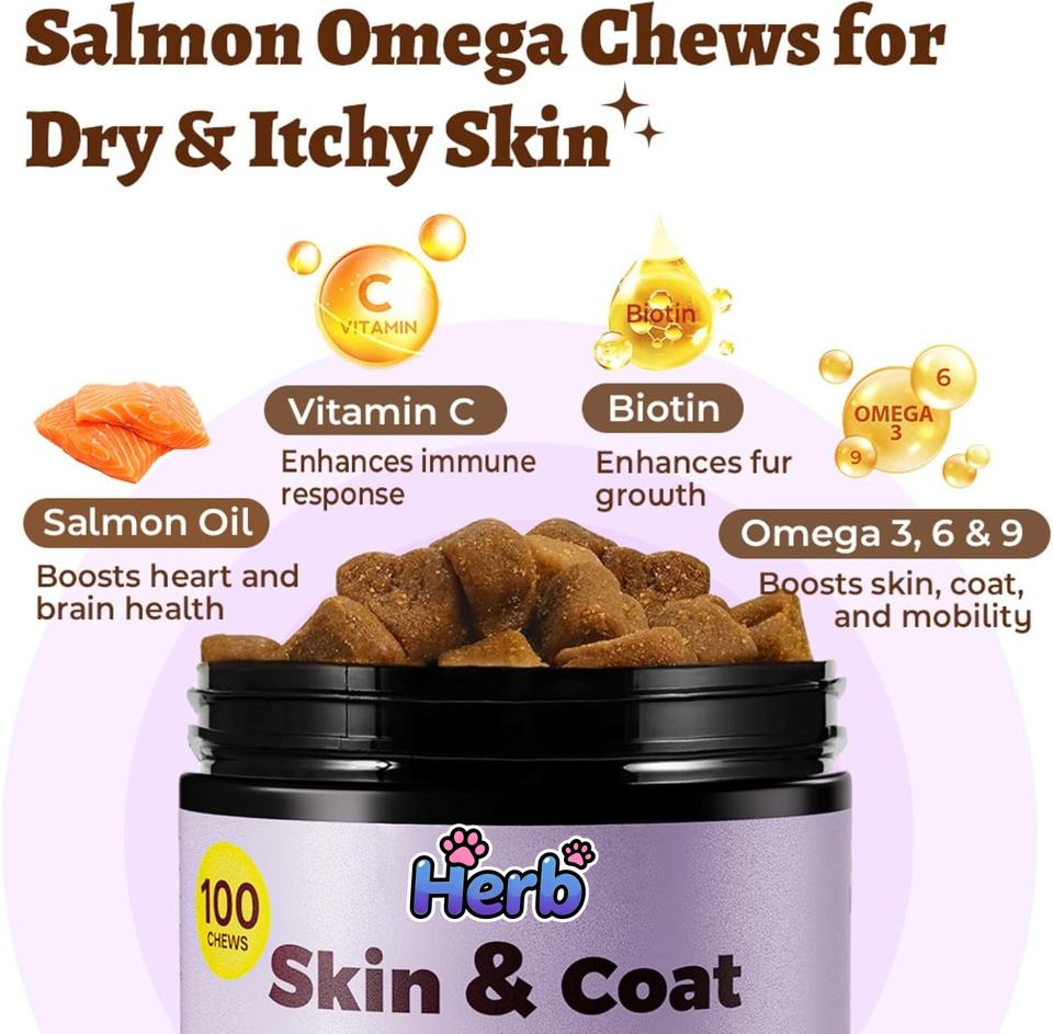 อาหารเสริมน้ำมันปลาโอเมก้า 3 6 9 แบบเคี้ยว ยี่ห้อไพรเวทเลเบล อุดมด้วย EPA DHA วิตามินซีและอี ช่วยบรรเทาอาการแพ้ ลดการหลุดร่วงของขน สำหรับสุนัขและแมว เพื่อสุขภาพที่ดี