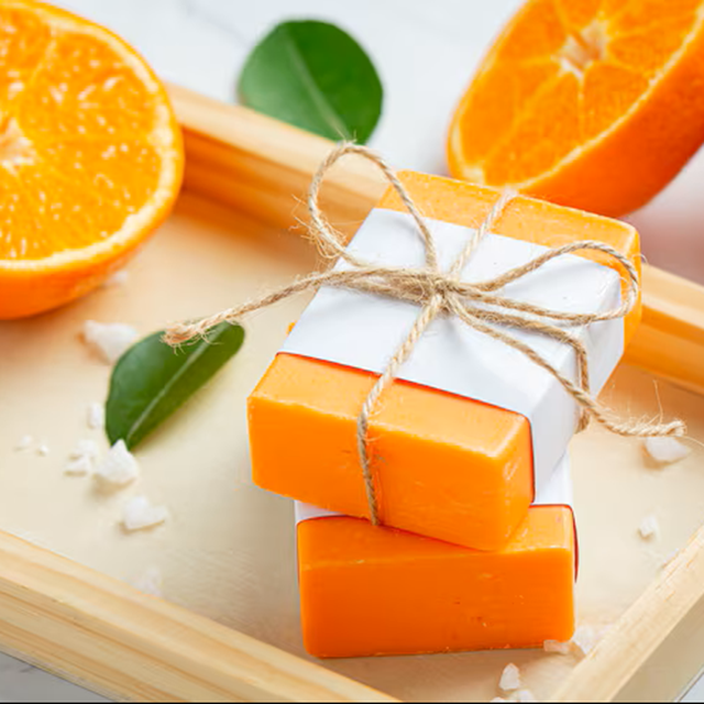 สบู่ก้อนอาบน้ำสีส้มพร้อมวิตามินซีและน้ำมันหอมระเหย OEM ขายส่งจำนวนมากกระจ่างใสและบำรุงผิวกาย