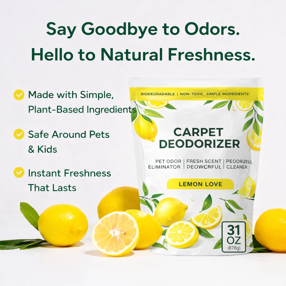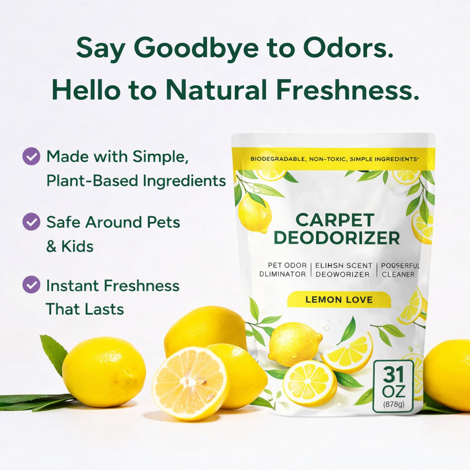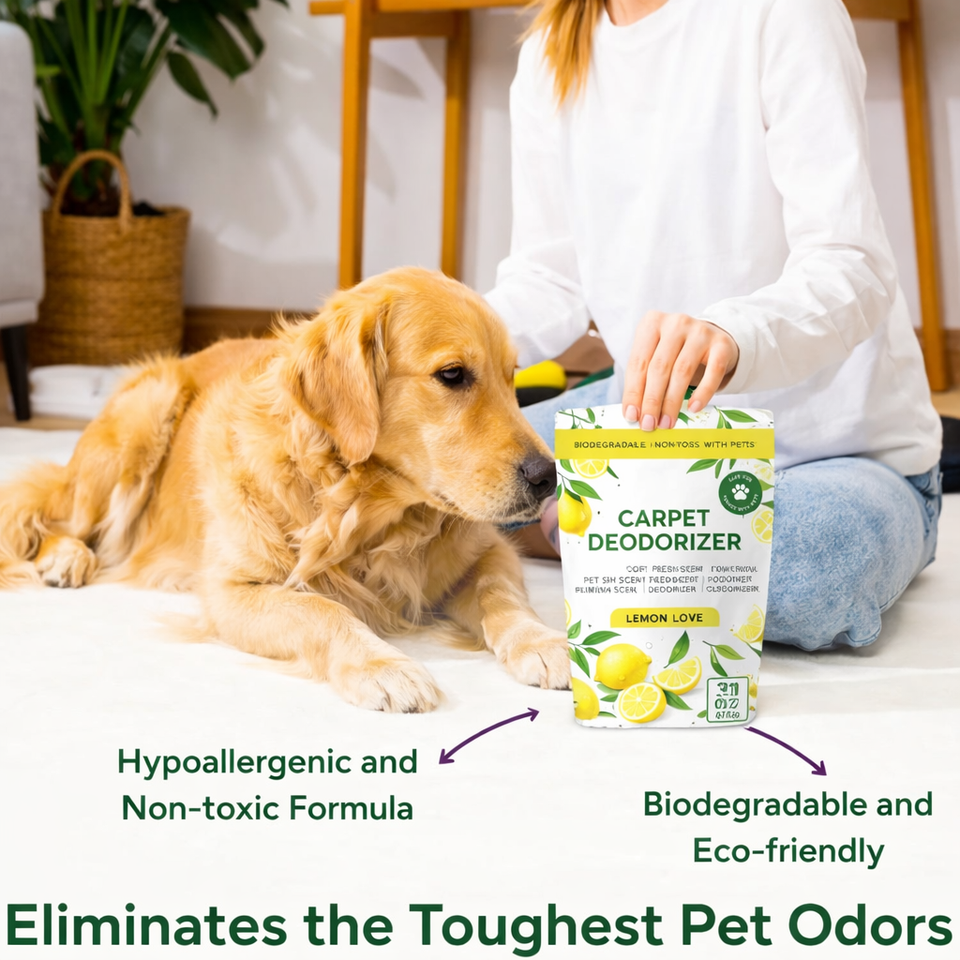 ผงกำจัดกลิ่นสัตว์เลี้ยงสูตรเฉพาะ กลิ่นหอมสดชื่นสำหรับพรม กำจัดกลิ่นได้อย่างมีประสิทธิภาพ กลิ่นเลมอนยูคาลิปตัส ดับกลิ่นอย่างเป็นธรรมชาติ