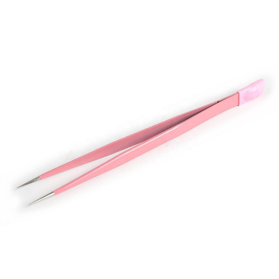 แหนบต่อขนตาสแตนเลสสีชมพูเครื่องมือแยกปลายแหลมสำหรับแต่งหน้าและตกแต่งเล็บอุปกรณ์ตกแต่งเล็บ