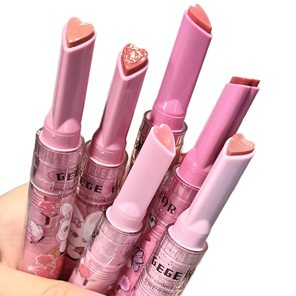ฉลากส่วนตัวกระต่ายสีชมพูแต่งหน้าลิปสติก 6 สีกันน้ําติดทนนานแห้งริมฝีปากลึกชุ่มชื้นกระจกลิปสติกกลอส