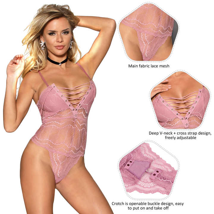ชุดชั้นในลายเท็ดดี้สำหรับผู้ใหญ่ชุดชั้นในเซ็กซี่เปลือยขนาดพลัสไซส์ลายลูกไม้กลวงฉลากส่วนตัว