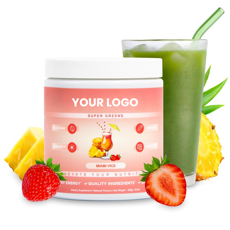 ส่วนผสมหลัก:หญ้าอัลฟัลฟาออร์แกนิก, หญ้าข้าวสาลีออร์แกนิก, น้ำมะนาวออร์แกนิก, ผักคะน้าออร์แกนิก, ออร์แกนิก แอสทรากาลัส, สาหร่ายสไปรูลิน่าออร์แกนิก, หญ้าข้าวโอ๊ตออร์แกนิก, คลอเรลล่าออร์แกนิก, มะพร้าวออร์แกนิก, สารสกัดกาแฟอาราบิก้า, สารสกัดจากชาเขียว, ต้นอ่อนบรอกโคลี, สารสกัดจากหัวหอม, สารสกัดจากแอปเปิ้ล, เควอซิทิน, มะเขือเทศ, บรอกโคลี, คามู คามู, มอลโตเด็กซ์ตริน, สารสกัดจากแอซีโรล่า, อะไซ, ขมิ้น, กระเทียม, โหระพา, ออริกาโน, อบเชย, แครอท, เชอร์รี่, ผักโขม, โชคเบอร์รี่, คะน้า, แบล็กเบอร์รี่, สารสกัดจากบิลเบอร์รี่, บรัสเซลส์สปรอท, เลซิตินจากดอกทานตะวัน