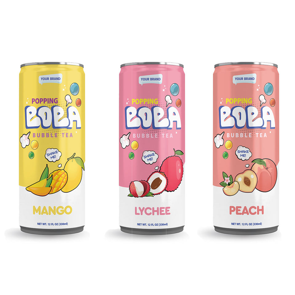 เครื่องดื่มชา Boba ขนาด330มล. จากเวียดนามดีไซน์ฟรีและตัวอย่างรสชาติมะม่วงลิ้นจี่พีชสั่งติดป้ายได้ตามต้องการ