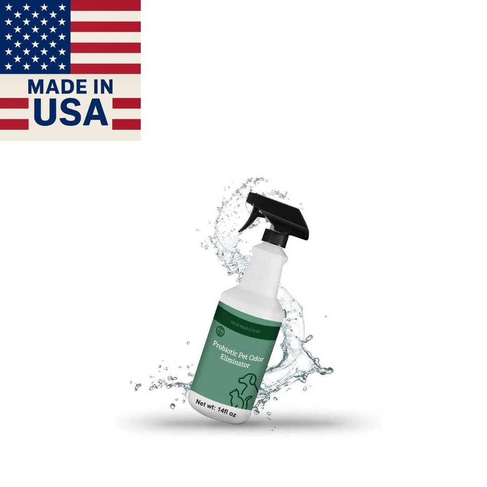 เครื่องกำจัดกลิ่นสัตว์เลี้ยงสูตรโปรไบโอติก8ออนซ์สำหรับสุนัขโลโก้แบบกำหนดเองผลิตในสหรัฐอเมริกา