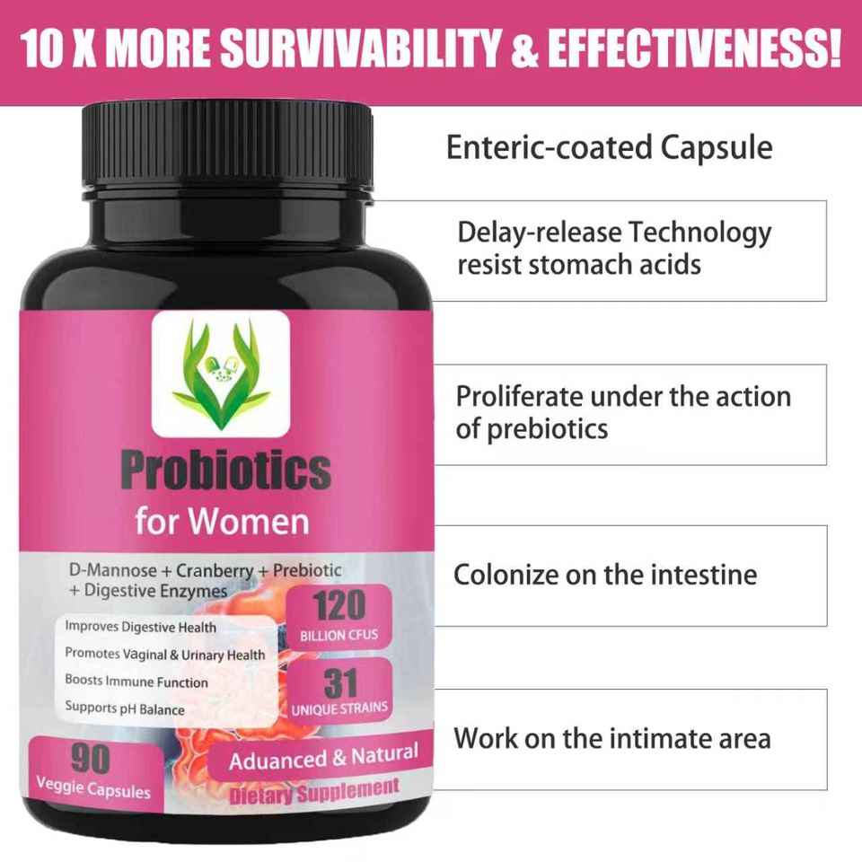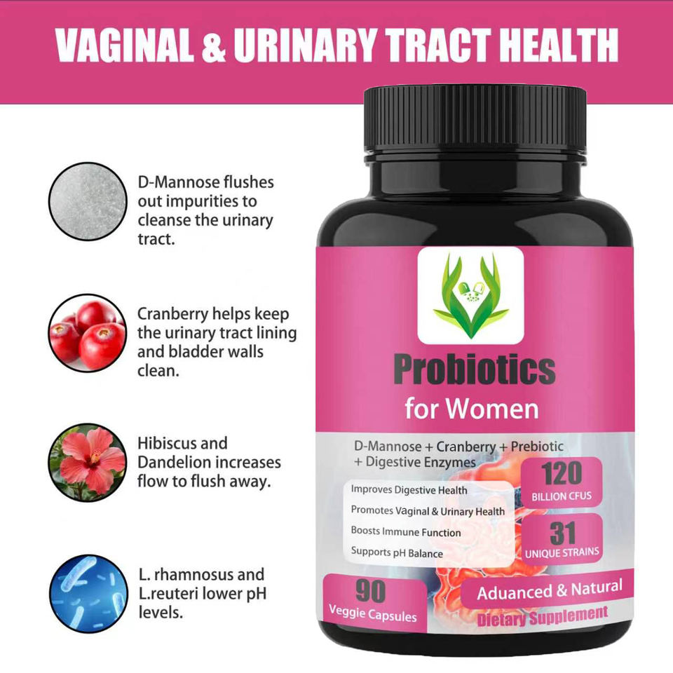 โปรไบโอติกส์สำหรับผู้หญิงแบบแคปซูล แบรนด์ส่วนตัว ดี-แมนโนส แครนเบอร์รี่ พรีไบโอติก เอนไซม์ย่อยอาหาร ช่วยปรับปรุงสุขภาพทางเดินอาหารและช่องคลอด