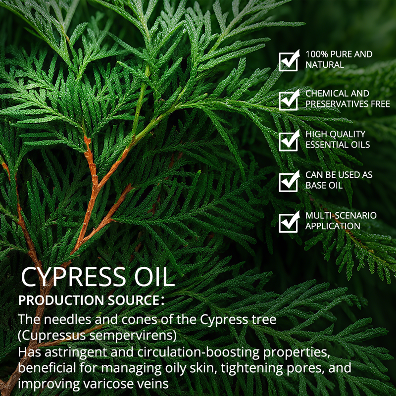 น้ำมันหอมระเหยไซเปรสบริสุทธิ์แบบฉลากส่วนตัว กลั่นด้วยไอน้ำ สำหรับเครื่องสำอาง สบู่ เทียน ผลิตภัณฑ์ดูแลเส้นผม น้ำหอม ผลิตภัณฑ์ดูแลผิว