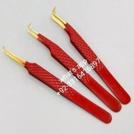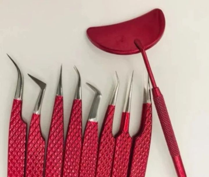 แหนบถอนขนตาสแตนเลสสีแดงปลายแหลมชุดเพิ่มโวลุ่มสำหรับการต่อขนตา