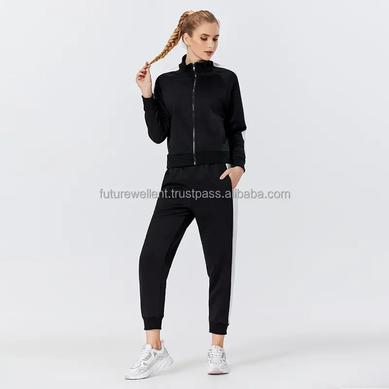 ชุดวอร์มสองชิ้นสำหรับผู้หญิงชุดวอร์มแบบสวมหัวผ้าฟลีซผ้าฝ้ายสีฟ้าชุดออกกำลังกายสำหรับผู้หญิง