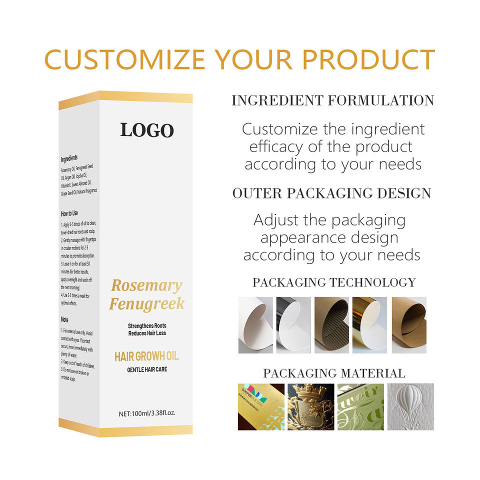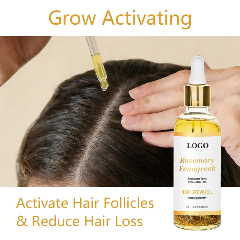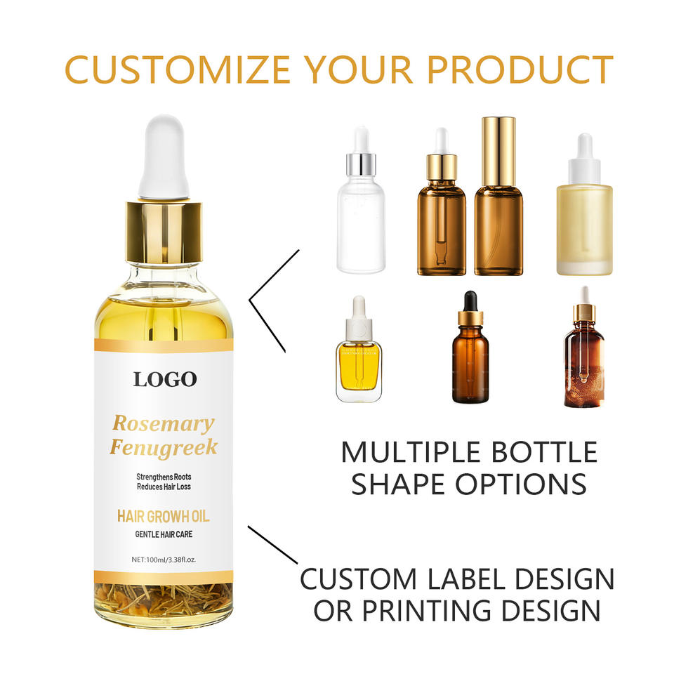น้ำมันบำรุงผมสูตรโรสแมรี่และเฟนูกรีกสำหรับแบรนด์ส่วนตัว | เสริมสร้างรากผม ลดการหลุดร่วงของเส้นผม และส่งเสริมให้ผมหนาขึ้น สุขภาพดีขึ้น