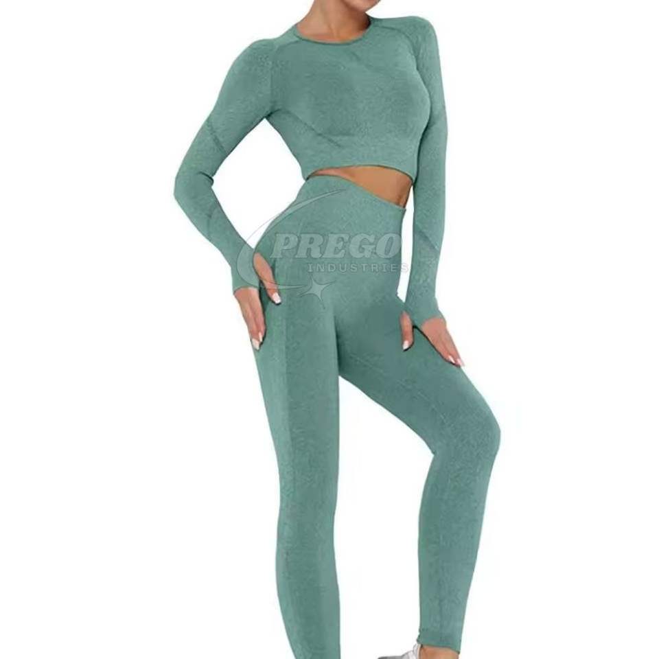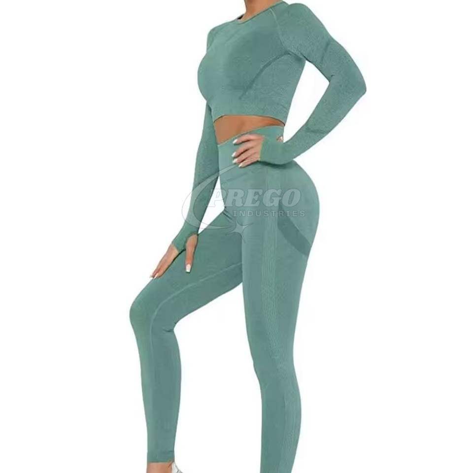 ชุดโยคะไร้รอยต่อแบบ Private Label เสื้อครอปท็อปและกางเกงโยคะ ชุดออกกำลังกายสำหรับผู้หญิง ชุด 2 ชิ้น
