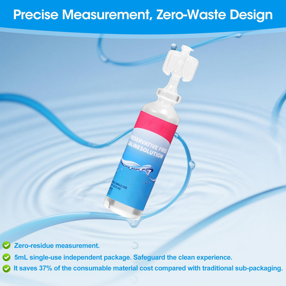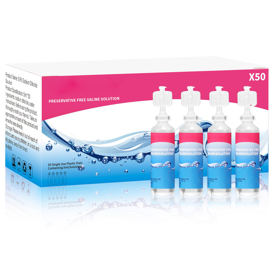 ขวดสารละลายน้ำเกลือสำหรับทำความสะอาดคอนแทคเลนส์แบบไม่ใช้สารกันบูดใช้ครั้งเดียวฉลากส่วนตัว