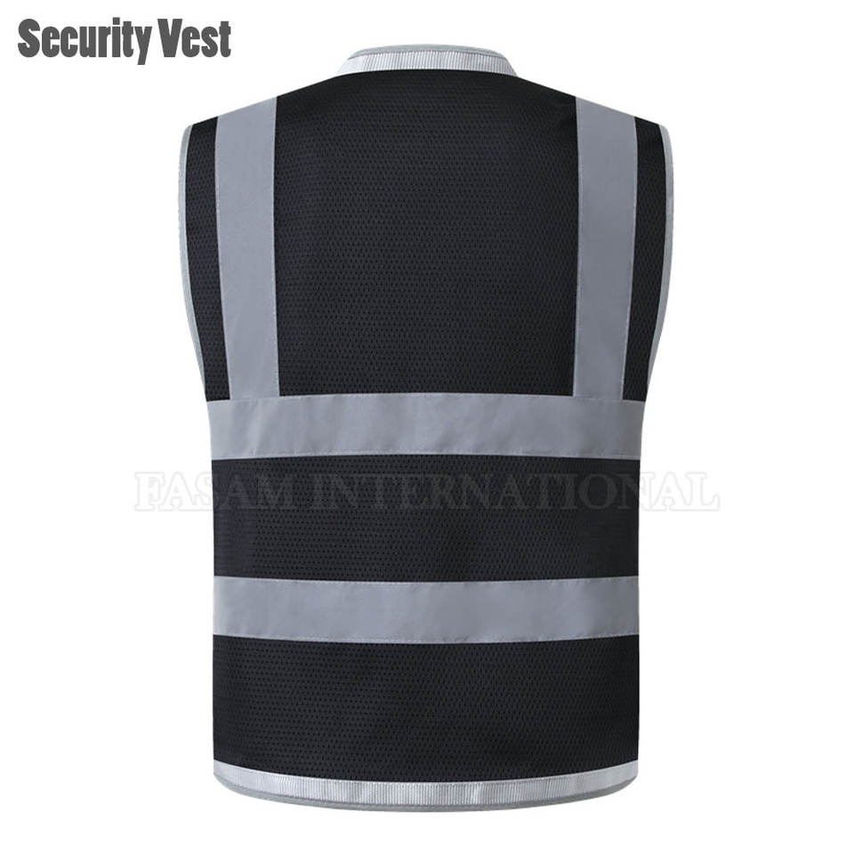 เสื้อกั๊กรักษาความปลอดภัยของผู้ชายเสื้อกั๊กรักษาความปลอดภัยแบบสลิมฟิตเสื้อกั๊กผ้าโพลีเอสเตอร์มาใหม่ฉลากตามต้องการ