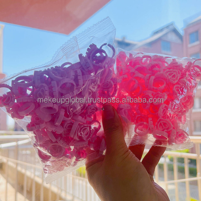 แหวนกาวติดขนตาพลาสติกรูปหัวใจสำหรับเครื่องมือต่อขนตา100ชิ้น