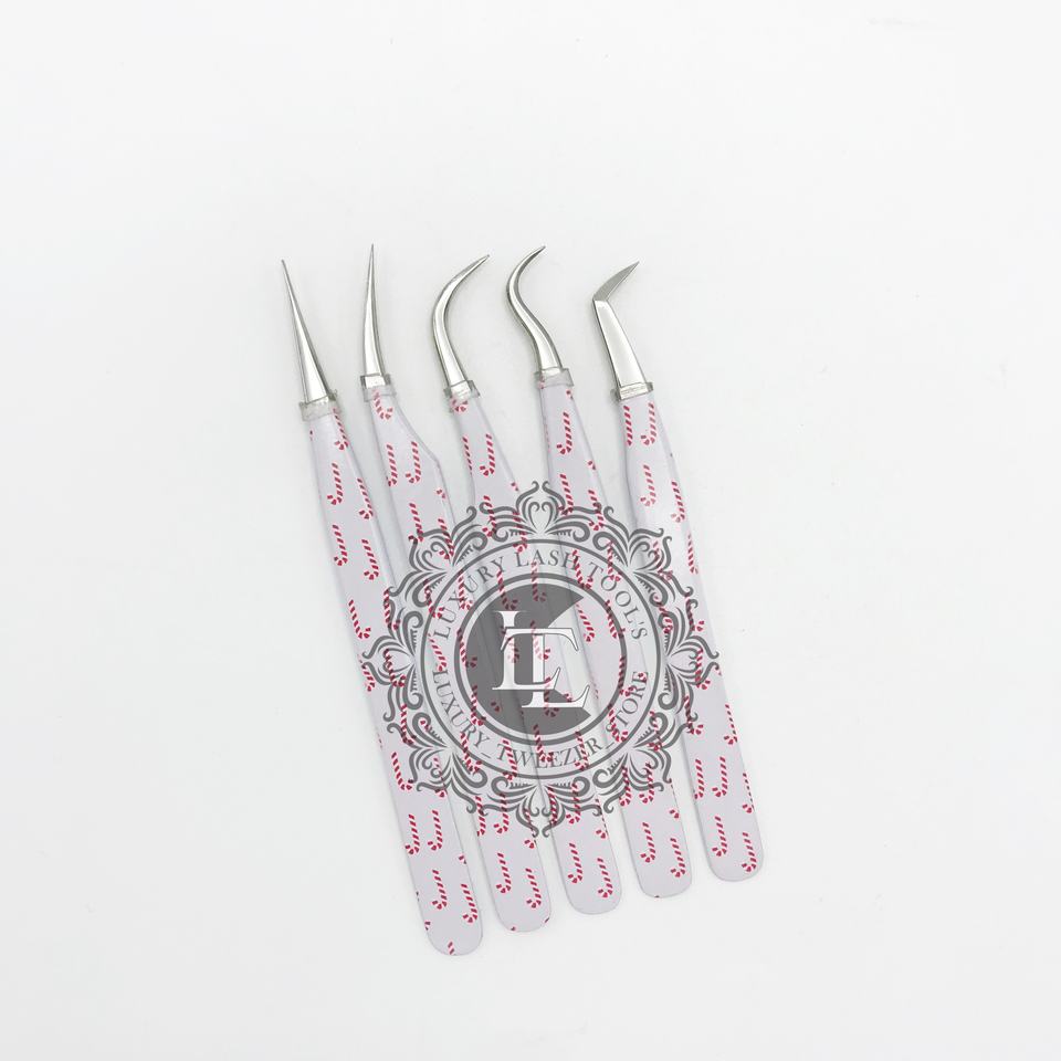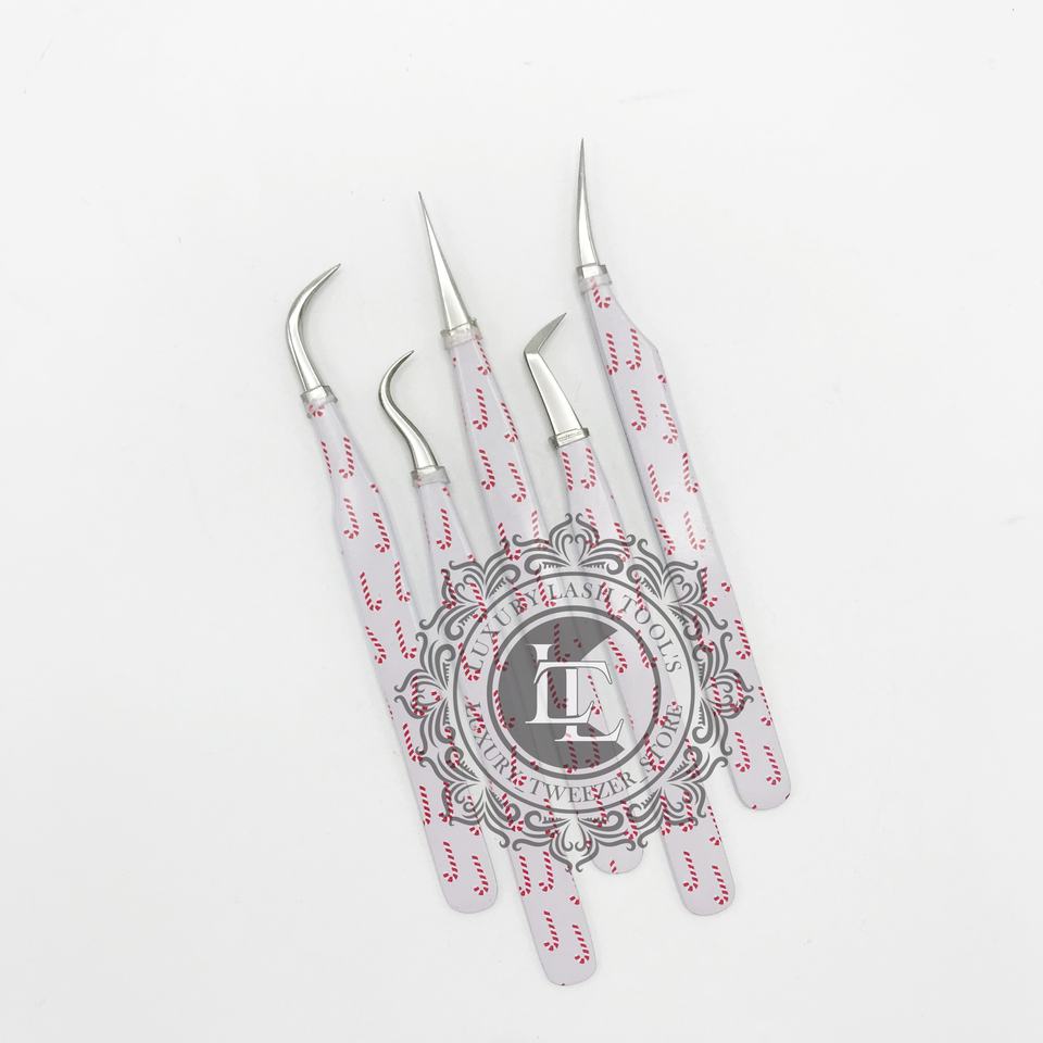 แหนบต่อขนตาทำจากสเตนเลสเคลือบเมอร์รี่คริสต์มาสใช้มือทดสอบปลายเงินติดป้ายตามต้องการ