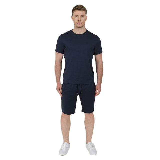 ชุดสั้น2ชิ้นแบบลำลองของผู้ชายชุดสั้นระบายอากาศได้ดีดีไซน์ตามสั่งแบบ OEM สีพื้นชุดสั้น