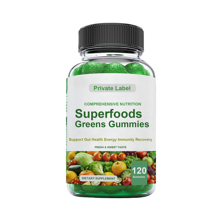 วิตามินรวมชนิดกัมมี่ซุปเปอร์กรีนส์แบรนด์ส่วนตัว สูตรปรับแต่งได้เต็มที่ พร้อมสารอาหารจากซุปเปอร์ฟู้ด บริการ ODM มีให้บริการ