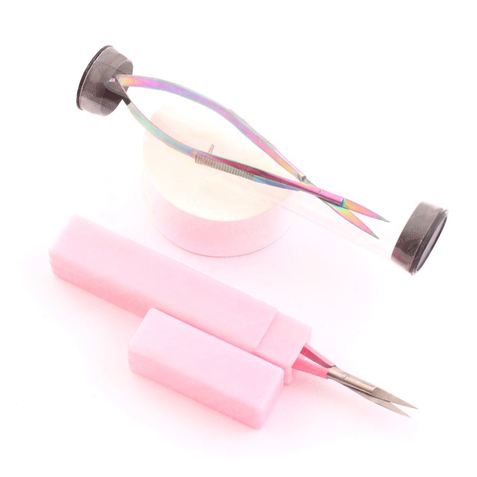 Customized Boxed Private Label Top Selling Flat Tip Stainless Steel Spring Scissors for Eyebrow Trimming & Eyelash Care