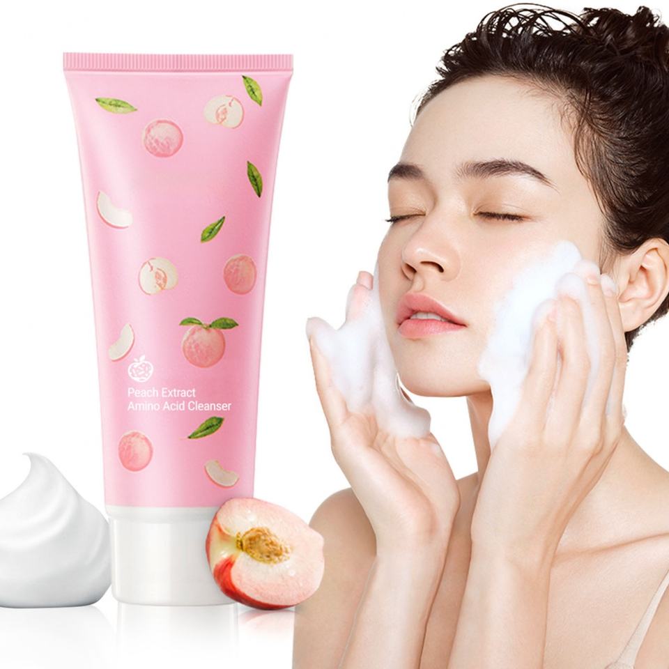 ครีมล้างหน้าสูตรอ่อนโยนสำหรับผิวแพ้ง่าย ผลิตภัณฑ์ทำความสะอาดผิวหน้าแบบโฟม กลิ่นพีช วีแกน แบรนด์ส่วนตัว